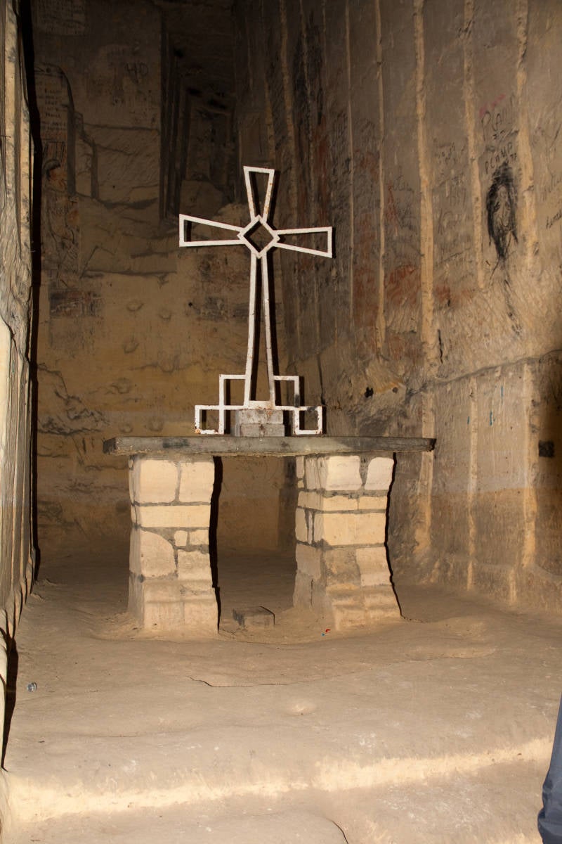 Boven: de ingang naar de Zonneberg-grot. Midden: "stratenplan" Rechts één van de vele tekeningen in de grotten.
